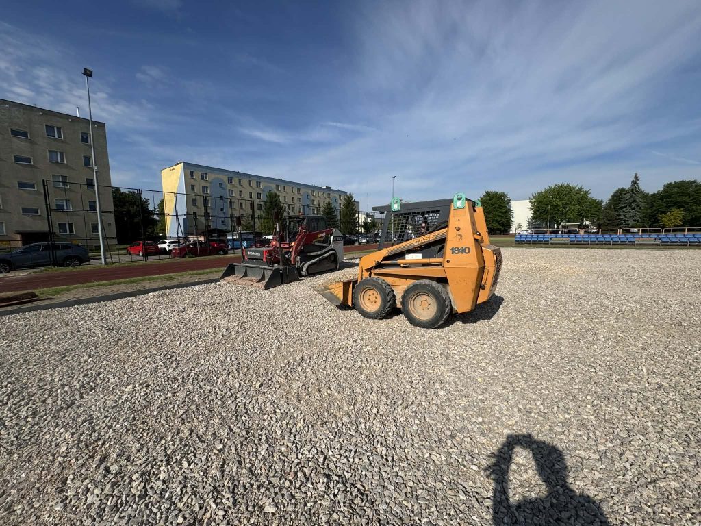 Miniładowarka: Niezastąpiona przy precyzyjnym rozścielaniu warstw kruszywa pod nawierzchnie sportowe i bezpieczne (EPDM).