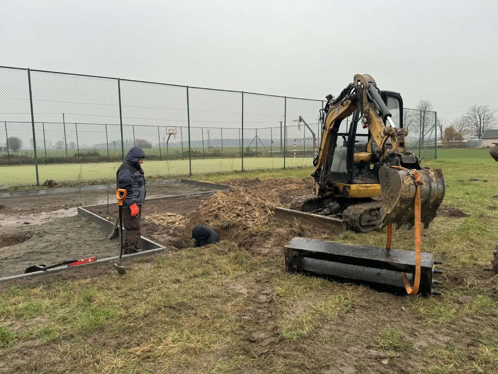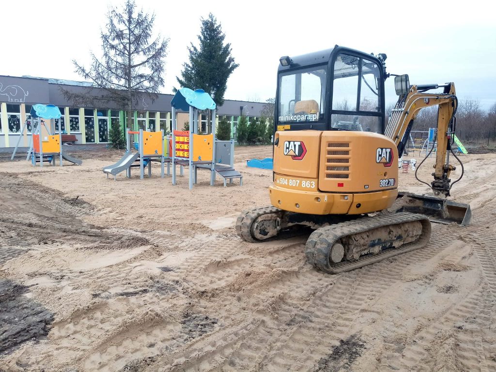 Wykopach pod instalacje i fundamenty punktowe na placach zabaw.