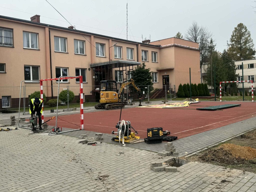 Roboty rozbiórkowe i przygotowawcze: Usuwanie starych nawierzchni, krawężników oraz elementów infrastruktury przed przystąpieniem do prac właściwych.